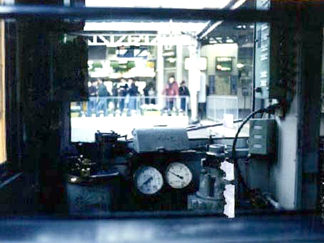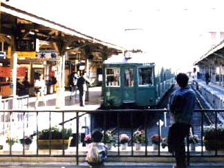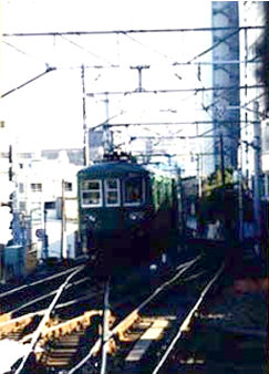 89/03/18 旧3000系引退のときに撮影。手前に座っている小さなこどもは、撮影に行くと言ったらついて来た息子。今では背丈は追い抜かれてしまった。このときいろいろ撮影したのだが、アルバムに貼るとき糊がはみ出てしまってプリントがはがれてしまっていた。ネガをさがしたが行方不明。 辛うじて無事なプリントと、部分をトリミングして載せるしかなかった。