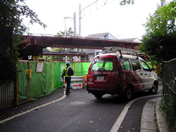 通れなくなったことを知らない車が結構来るので、他の踏切より多くの係員が立っていた。それでも車が来るので、地下化からしばらくたつと、手前の交差点に係員が立つようになった。