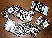 旅行中に遊ぶためのもの。日本人は小さくするのが得意?。「山城屋」でもらったものより、こちらの方がデザインも作りも神経が行き届いた感じ。大きさの比較のために鉛筆を置いてみた。