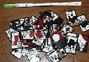 道才かるたは結構高かったと思う。私は初めから高くても買うつもりでいたからすぐ払ったら、「冷やかしや、ちょっと聞いたからと来る人が多くて値段を言うと買わない人がほとんどなのに……」と喜ばれ、懐中札や、まだ道才かるたになっていない絵札のみの刷りだし(上の写真)をプレゼントされた。