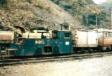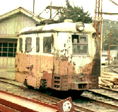 本で「明延の1円電車」を見て、ぜひとも行ってみたかった。社員が1円で、社員以外は10円の乗車賃と出ていた。正式には三菱金属明延鉱業所と言う、いわゆる鉱山で掘りだした鉱石を運ぶ列車である。 新幹線は、まだ岡山まで。岡山から姫路まで湘南電車80系が各駅停車に使われていた。2等車の3等格下げが行なわれたばかりで、リクライニングシートが残っているサロ格下げサハに地元の客も多く乗っていた。まだ80系は改造は行なわれておらず、原形を保っていた。 橋を渡ると木造の未張番小屋らしきものがあり、オジサンが座っている。「10円電車に乗せてほしい。東京からやって来た。」と何回も言ってもダメと相手にしてくれない。これは困ったと思っていると、後ろからバス停でいっしょに降りた若い奥さんが「オジサン乗せてあげなさいよ。わざわざ東京から来たんだから。」と強力に後押しをしてくれた。とうとうオジサンは「じゃ〜乗んな」と許可を出し、一転して10円電車の切符と錫鉱石の原石をくれた。お金は受け取らないでタダで乗せてくれた。