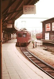 ★最終の鈍行大垣行で名古屋まで行き、近鉄で内部・八王子線が出ている近鉄四日市駅に。高架下から少し離れた駅に移る直前の仮のホームだった思う。まだ自動連結器ではなかった。電動車が付随車を引く2両編成で、駅に着くと乗客を降ろし、そのまま引き上げ線に。バックして途中で付随車を切り放し、前に着いて待っている電動車に付随車のブレーキで制御して連結していた。この辺は言葉ではわからないかな。