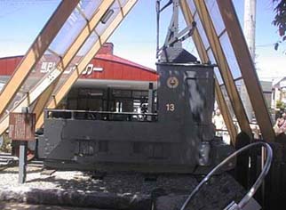 この機関車はデキ12形機関車といいアメリカのジェフリー社で大正九年に製作したハンドブレーキ常用、非常用電気ブレーキ付きという鉱山用のトロッコを改造したものである。