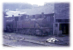 | 途中列車交換する加世田駅に、鹿児島交通の前進、南薩鉄道の開業当時の蒸気機関車と思われる。レイアウトの隅の情景に最適。赤いサビのウエザリングは必須。これをペン画で描いたものがどこかにあるはず。さがしてあったらアップします。 |