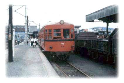 人吉で途中下車して、うんすんカルタのことを聞きに、球磨川下りの発着場を見て、球磨焼酎の醸造元が点在する道をかなり歩いて、市役所などをまわったが、地元の人はだれも知らずガッカリしたが、大畑ループと吉松のスイッチバックに感激。 伊集院から鹿児島交通のキハ07と同型のキハ100に乗り換える。道床の砂利がほとんどなく、草も生えていて、線路の状態が良くないのにスピードを出すので、乗り心地はすこぶる悪い。 国鉄キハ10と同型のキハ300もあって、国鉄の西鹿児島まで乗り入れていた。途中の加津佐駅が交換駅で、古典木造客車や蒸気機関車が放置されて、夕日が映えている風景が記憶に残っている。 指宿では海岸で砂をかける温泉の有名な風景を車窓から見る。普通国鉄と私鉄が同居している駅は、ホームが別々に分かれていることが多いが、枕崎駅はホームが一緒で線路も駅舎も一緒。区別がない。言葉で表現するのは難しいが、面白い駅だった。 枕崎に泊まる。鰹の豊漁でにぎわっていた。町中あちこちで鰹を干していて、鰹節の臭いがどこでも充満していた。 |