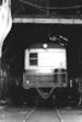 車庫に入って休んでいたキハ2。前面が丸みをおびていて、荷台があるのが特長