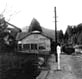 尾小屋駅。川の上に橋のように立てられているのがよくわかる。車両はキハ1