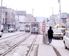 函館市電は都電とレール幅が同じため、廃止された都電の車両がで働いていました。これは函館市電が発注したもの。落ち着いた色の塗装が函館の街と調和していました。 前身は、明治30年12月12日開業の亀函馬車鉄道。 軌間は1372ミリで都電と同じ。 路線は函館駅を中心に市街地全体を走っている。 上の写真は500型。大きな車体番号が特色。