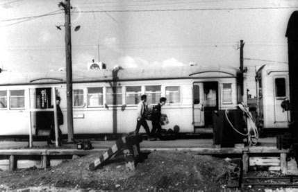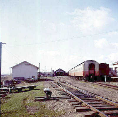 五所川原駅津軽鉄道ホーム●元西武鉄道の電車が客車化されていた。右がディーゼル。