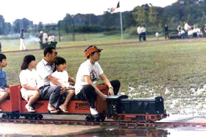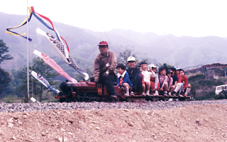 結婚はしていたが、子どもは連れて行った記憶はないから1982年か1983年頃。東光学園のミニSLフェスティバルの時は、小さな息子が写っているから、ベビーカーを押して行ったんだと思う。鯉のぼりが泳いでいるから5月、土の上に敷いたレールの上をOゲージの車輛も走っていた。