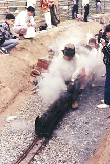 1987.9.27 東光学園 mini SL INTERNATIONAL FESTIVAL 東武鉄道の東武動物園の近くの東光学園で第1回のインターナショナル・ミニSLフェスティバルが行われたのが昭和58年,。我が家からは東京を横断して行かなければならないが2年続けて出かけてみた。雑誌などで見たライブスチームでは有名な顔を間近で見ることができた。 それと驚いたのは会場になった東光学園。日本工業大学などがあって、敷地内ほとんどにライブスチーム用の常設レールが敷かれてあった。なるほど会場に選ばれることはある。 第1回の顔触れはすごかった。2年続けて行った後は、遠いこともあって行かなくなったが、現在もやっているのだろうか。