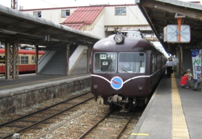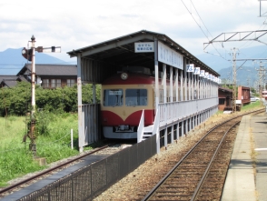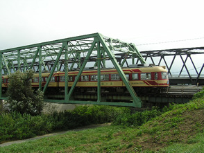 この後さらにもう1編成を昭和39年8月に増備。ABC編成とはいろいろ異なる部分が多い。台車は国鉄DT24に似ている空気バネ台車採用NA−315(T)に、ベンチレターのカタチも変わり、先頭車にはスカートが付いた。タブレット保護棒はC編成と同じ。D編成登場時はマルーンとクリームを塗り分けで「くりまんじゅう」と言う人もいた。このD編成は、当初名古屋鉄道の特急車や小田急のロマンスカーのように運転席を2階して、前面展望室の計画があったが、長野駅が狭く、運転の安全性から見送られたとか。 平成24年2月、成田エクスプレスに使われていたJR東日本253系2編成の入線にともない廃車された。最後の長野電鉄オリジナル車両だった。小布施の電車の広場に保存展示されている。 |