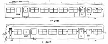 昭和32年までは急行列車と言っても1000系、時には戦前製の車両も入り、普通列車となんら変わりがなかった。増える観光客に適応する車両ということで、昭和32年日本車輌東京支店で製造したのが長野電鉄初のロマンスカー2000系2編成6両。長野−湯田中間に転換クロスシートの座席指定の特別特急列車としてデビューした・日本では初めて狭軌75kW、WN駆動装置を採用。これはA・B編成と呼ばれている。車両編成はMTMの3両固定。モハのパンタグラフはサハ寄りに付いている。外観は名古屋鉄道のモ5000形、モ5050形に似てはいるが、車体幅、車体下部、側窓に相違点がある。 特急列車は観光客・沿線の乗客からも好評を得たが、1日1編成使用だったので車両使用効率が悪く、昭和34年に1編成を増備し毎日2編成使用、1編成予備とし、長野−木島間にも特急の運転を開始した。これをC編成と呼んでいる。A・B編成は窓が上下段とも上昇式であるが、C編成の窓は上段は固定式になっている。タブレット保護棒もA・B編成は2本棒の簡単なもの、C編成は大きなものに変わった。台車はA・B・C編成ともモハがNA−4P、サハはNA4。この台車は富山地方鉄道など当時の日本車輌の地方私鉄向け優等車両にも見られる。C編成登場時はモハの妻寄りにラジオのアンテナがあったが取り外されている。 |