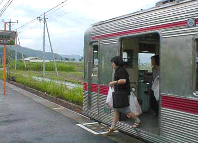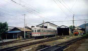 ![]() 駅のホームにはバックミラーと開く扉の位置を知らせる白線がひいてあった【井上駅】 従って外観は、赤い帯と屋根上の列車無線を除けば、日比谷線を走っていた当時とほとんど代わりはない。私が3500系を初めて見たのはモハ3500+モハ3510が入線したばかりの頃。まだOSカーの0系、2500系が主力だった。屋代駅と須坂駅に日比谷線から来たばかりの姿で大量に留置されていた。その後、冷房化が進められた。む ![]() 須坂駅に留置されている1500系と事故にあった3500系の前を走り抜ける。 ・クリックすると Quick Time ムービーが起動します。 【注意】30秒前後ロード時間がかかります。 見るためにはQuickTimeプラグインが必要です。 ![]() 事故にあった車両の代わりか修理用かわからないが、日比谷線のままの車両が来たと 思っていたら、ずっと置かれているのど部品取り用のようです。 【須坂駅】 |