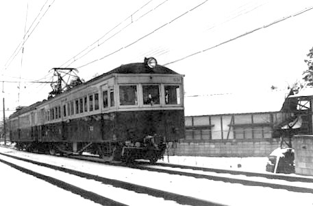 モハ530形は荷物室だけの形式なので、ここで荷物室への乗り心地を少し。高校時代はゲタを履いて通っていた。雪が降ったぐらいでも素足にゲタ!。男はコレぐらいじゃなくちゃぁと言うのは冗談で、時代がそんなだったのである。当時でも荷物は少なく、たいてい空で走っていたから、荷物合造車にはだれでも乗ることはできた。ただ、床は凸凹のスノコなので歩きづらい。夏の荷物室のいいところは、手動扉だったから走り出して扉を開ければ風が大量に入ってくるのだ。一方、冬は暖房が荷物室のため付いていないのであまり乗らなかった記憶がある。
