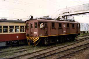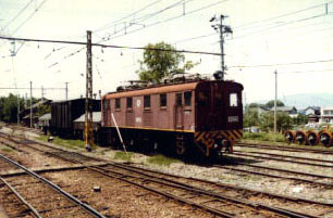北海道の定山渓鉄道が昭和32年4月に三菱電機で製造。昭和44年10月末、定山渓鉄道が廃止になり昭和45年4月15日に長野電鉄にやってきた。正面は当時流行の湘南形2枚窓スタイル。ブルーに黄色帯の塗装で、国鉄乗り入れの客車の先頭に立つ姿が似合っていた。長野電鉄貨物廃止にともない昭和54年9月4日越後交通へ譲渡。1B149という鋳造台車を履いていた。 |