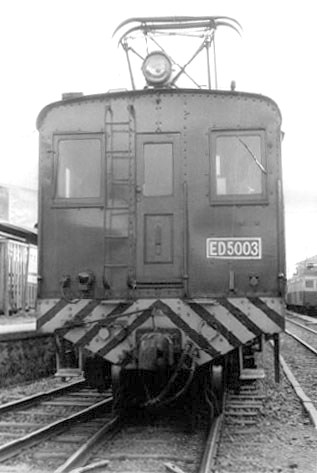 日立製作所笠戸工場製造。国鉄ED15形を小形にした形で外形はほとんど同じ。台車は板台枠。ED5002とED5003は途中で台車を交換している。パンタは当初日立A−3が2基。後に2つのパンタのうち1つをWHタイプに変えたので、前後でパンタグラフの大きさが異なっている。 |