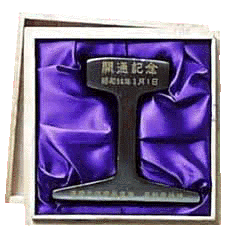 昭和56年3月1日に地下線が完成、運転が開始された時に配られた、記念の文鎮。左の説明書が添えてあった。木製の箱に入った豪華なもの。地下駅になったのは長野駅〜善光寺下駅なのだが、長野駅〜本郷駅と書かれている。 |
