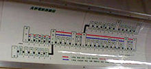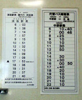 中:電車内に貼られた代替バス時刻表(右)電車より本数は多い。