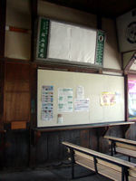 中:木島駅の待合室。時刻表は白い紙で被われている