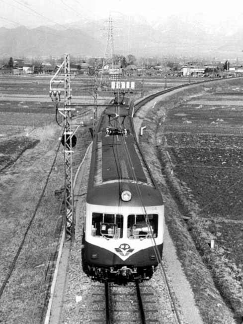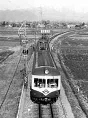 左は600系が陸橋から出てきた。屋根の上に板が敷かれている。603・604は山の内線配区間用に車輪冷却用の水槽を屋上に乗せていたというが、これはその跡なのだろうか。 ![]() 特急2000系がやってきた。 ↑クリックすると 大きな画像になります。 |