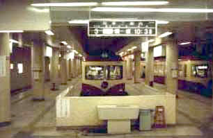 撮影当時のながでんの駅は跨線橋はなく、向かいのホームに行くのにはレールを横切って渡る方式。車庫のある須坂駅だけ、地下道があった。長野線の桐原駅は郷土玩具の「わら馬」で有名で、駅の入口の左のガラスケースに「わら馬」の現物が飾ってあった。 |